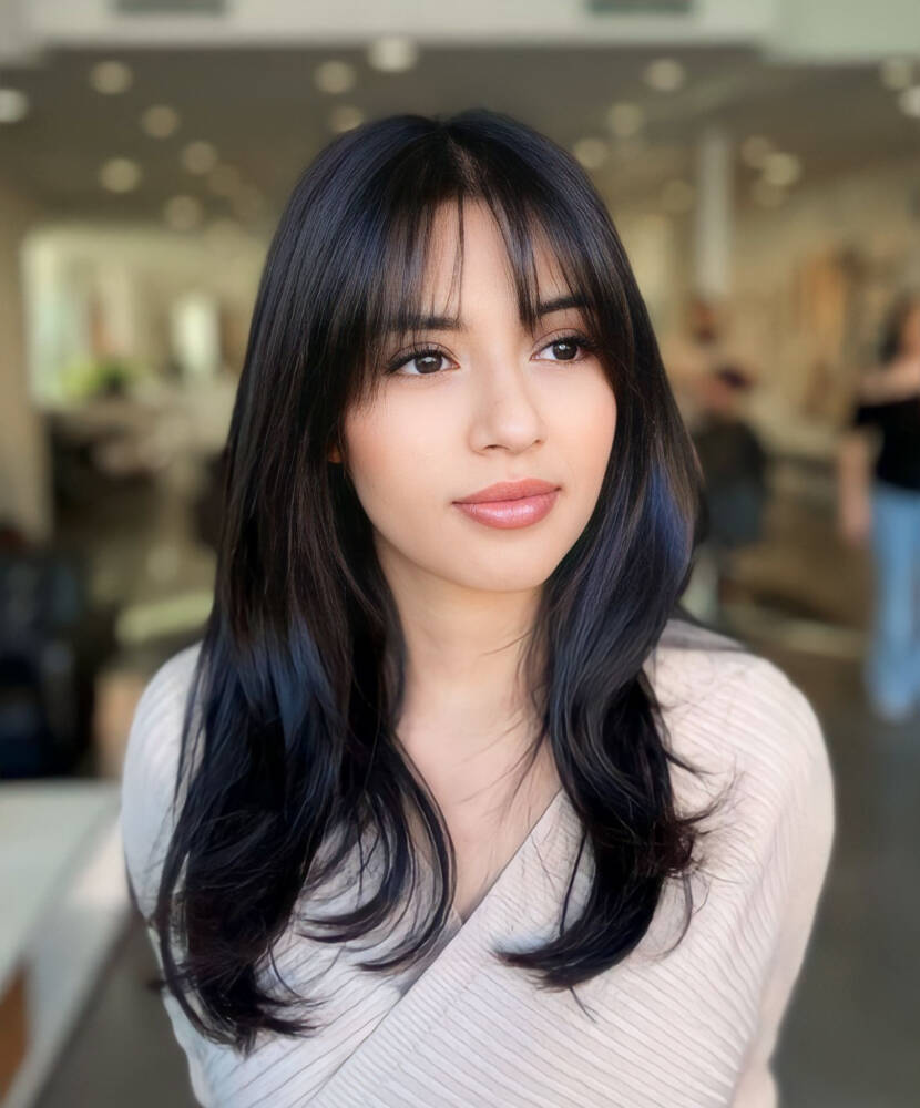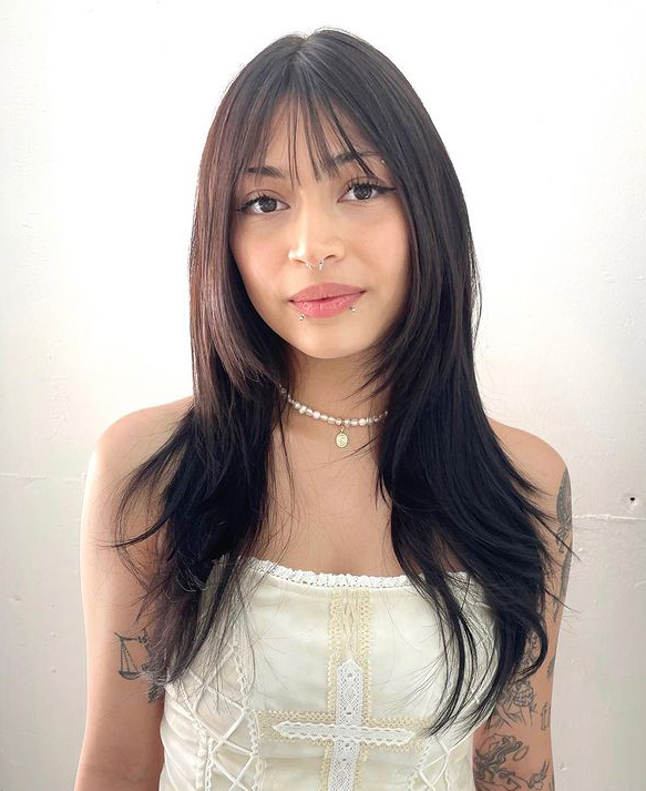 Este flequillo nace en honor a la mítica cantante, Jane Birkin. Un flequillo largo, recto y semi-despuntado que muestra la zona central de la frente y que rebosa frescura, naturalidad y juventud con un toque elegante.
